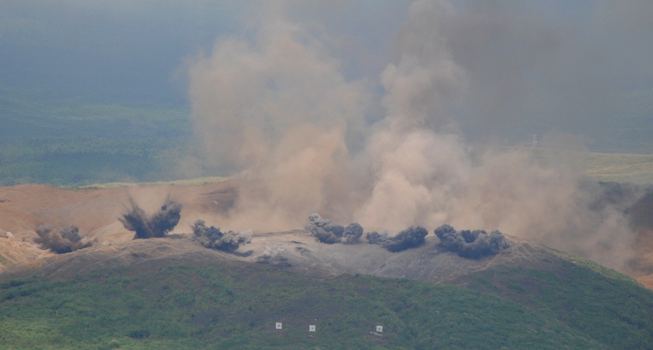 The overview of the exercise area in panorama (hopefully click twice), Mount Fuji is overcast in the center, and intended targets are arranged in that direction.Preparedness: