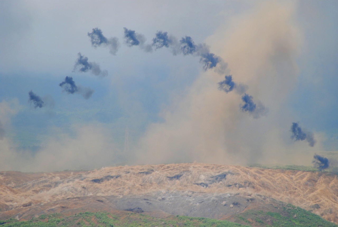 Type-92 Minefield-clearing Vehicle: -1 "Call for fire!", -2 "Fire!", -3, -4 "Impact!".