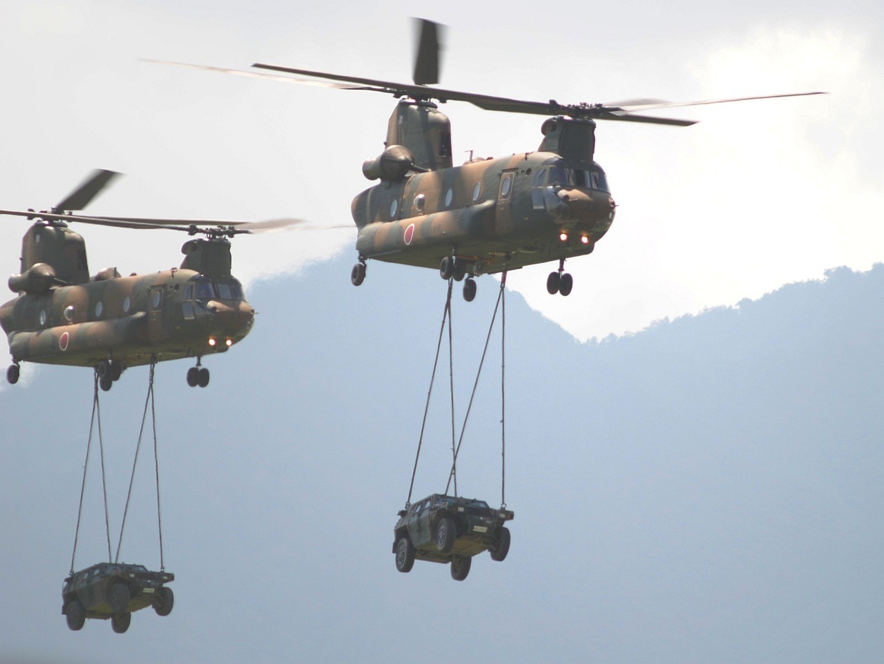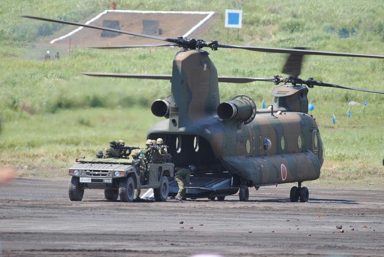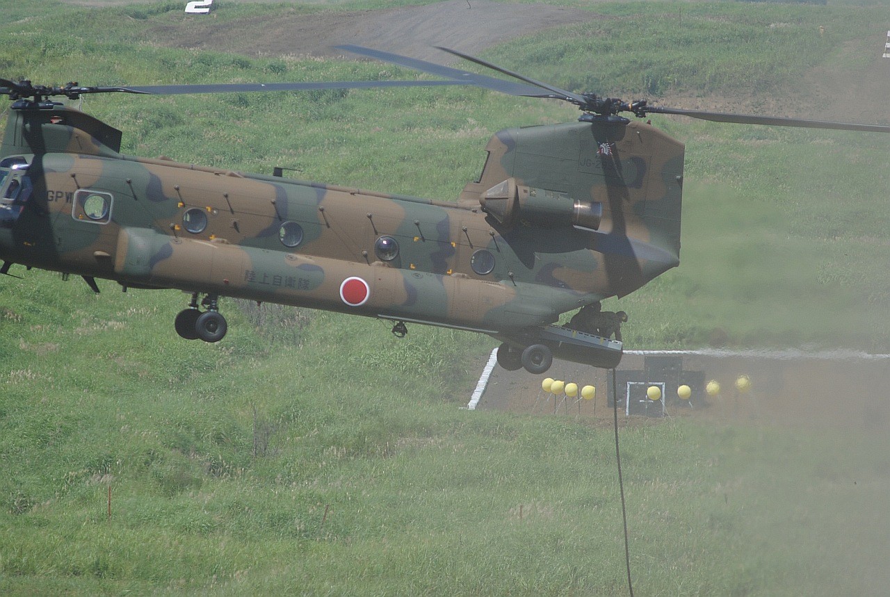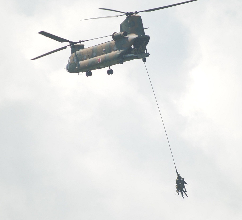 CH-47J: -1 Approaching the landing area and braking, -2 Deploying the platoon, -3 Deploying the platoon, -4 Prompt retreat, -5 Evaculating the mission crew, -6 Prepairing for evacuation, -7 Steadly aiming the target while being evaculated, -8 Mission accomplished, -9 Heliborne enhancement of compat efficiency, -10 Ditto, heliborne operation, -11 Sharp disengagement maneuver from the combat zone.