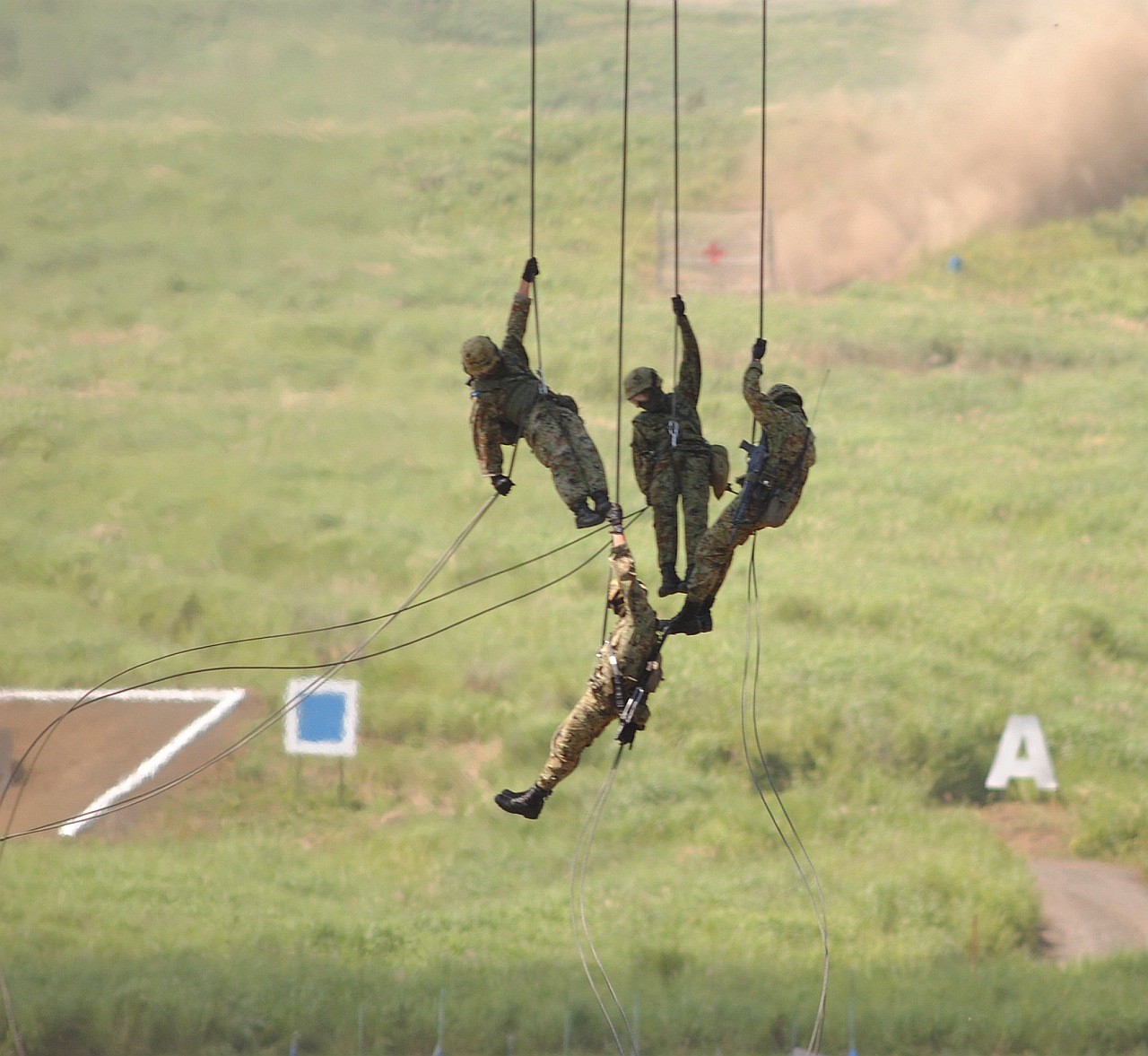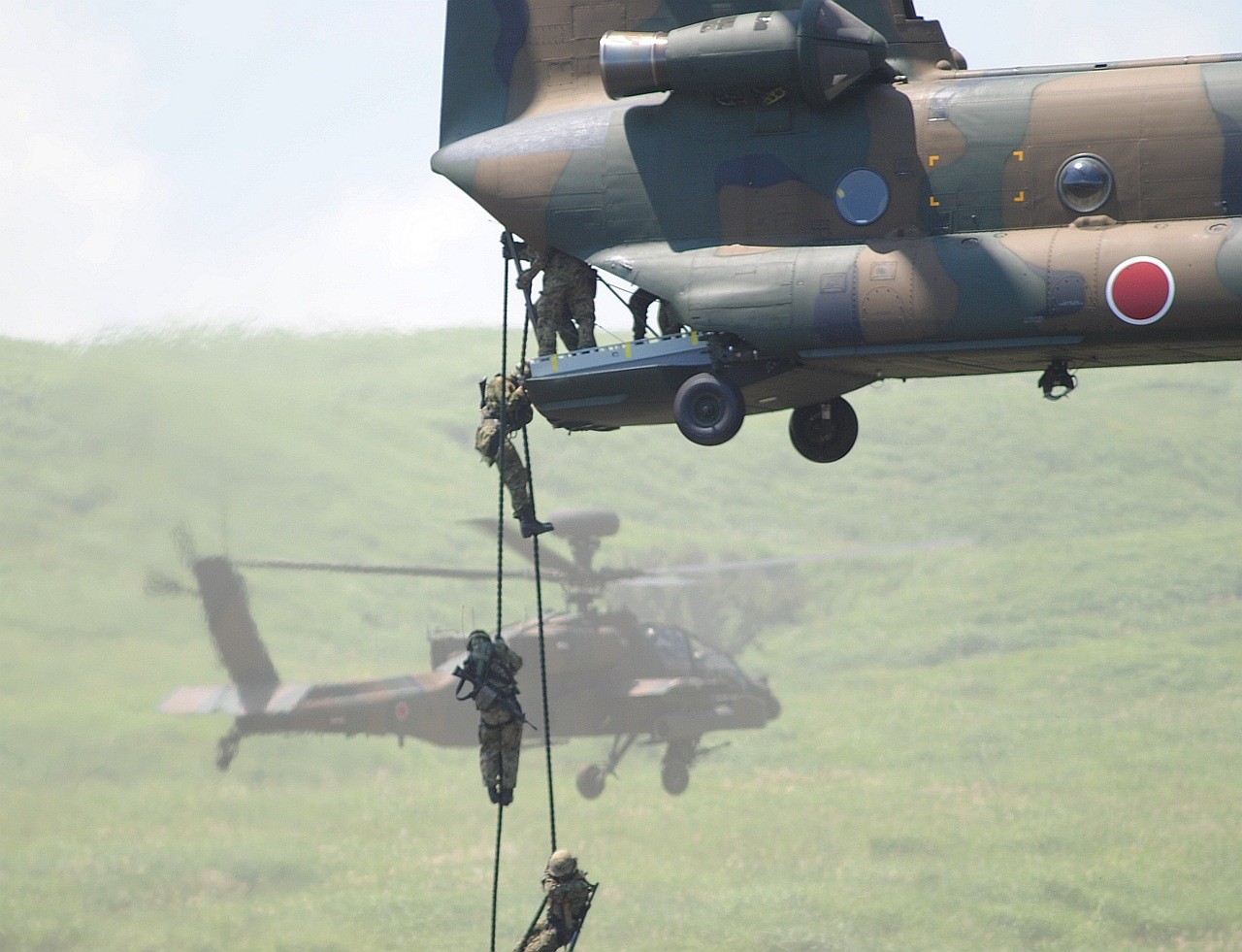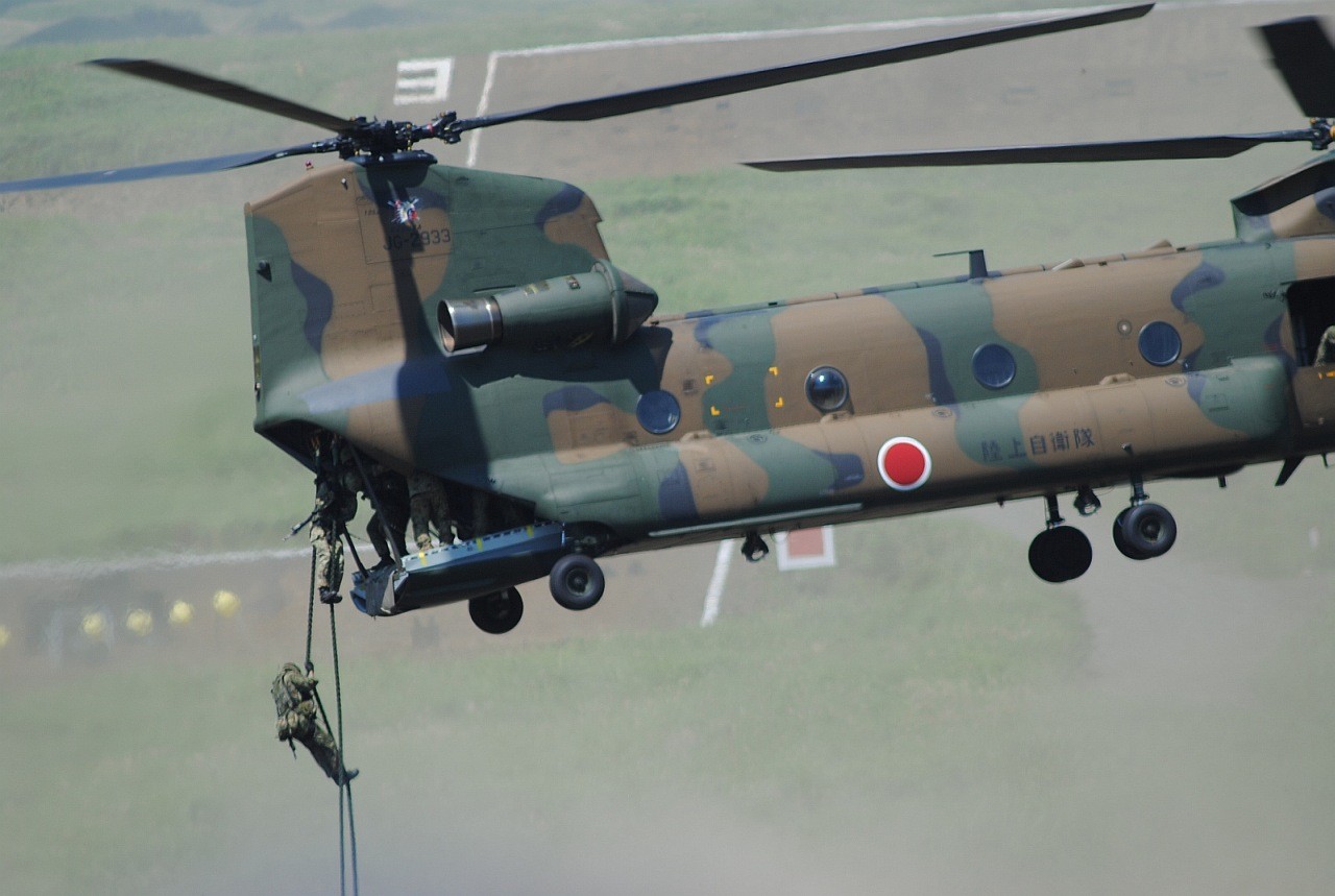 CH-47J: -1 Approaching the landing area and braking, -2 Deploying the platoon, -3 Deploying the platoon, -4 Prompt retreat, -5 Evaculating the mission crew, -6 Prepairing for evacuation, -7 Steadly aiming the target while being evaculated, -8 Mission accomplished, -9 Heliborne enhancement of compat efficiency, -10 Ditto, heliborne operation, -11 Sharp disengagement maneuver from the combat zone.