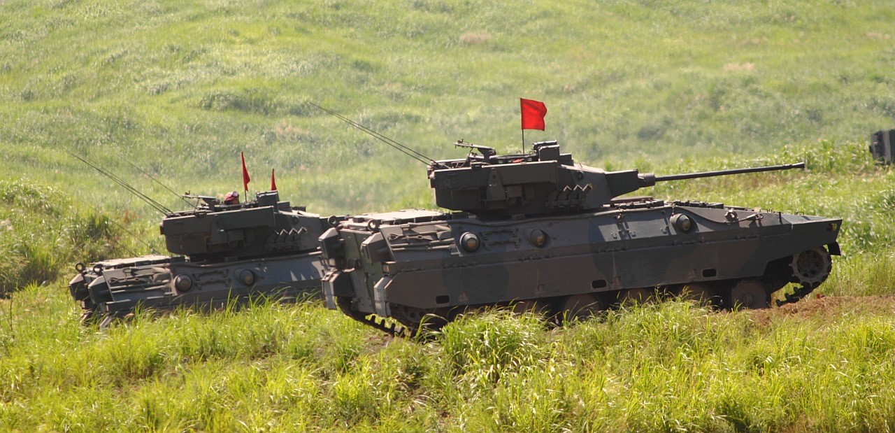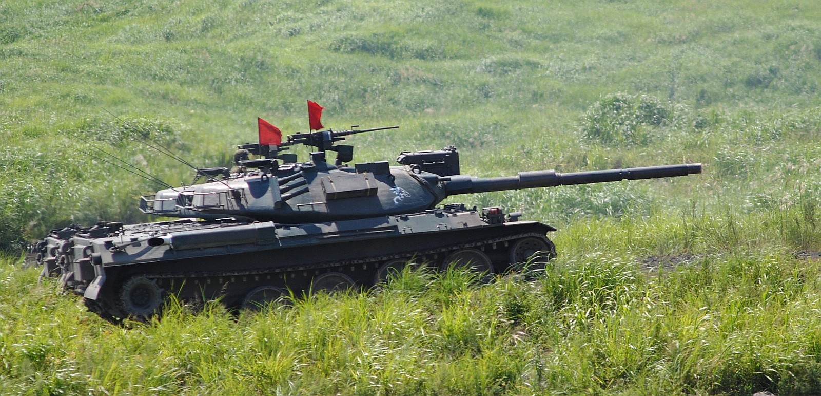 Type-90 Main Battle Tank (MBT): -1 "In wolf pack", -2, -3, -4, -5, -6, Shooting sound of German Rheinmetall 120 mm L/44 gun (512KB mp3 file).[Armored Vehicle and Artillery]