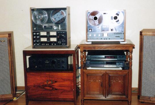 Main system in 2004 (TEAC A6300MkII, left, and TEAC/TASCAM 40-4, right) on a new audio rack (crick here to enlarge)