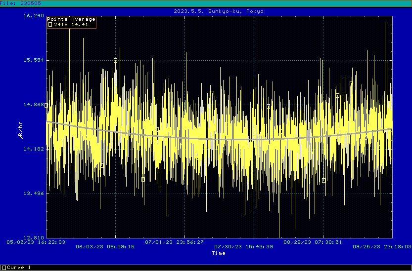 Pre-Accident Background (normal controls):1997.2.22-23 (24 hours). in Tokyo:Summary text of measument: 1997.2.22-23 - Average 14.03µR/hr