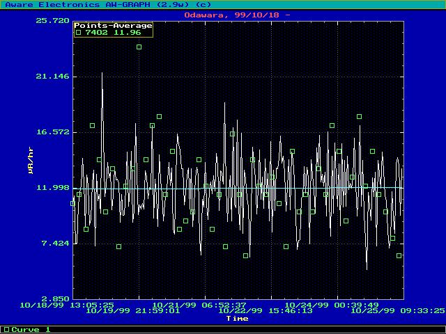 Pre-Accident Background (normal controls):1999.10.18-25. at Odawara:Summary graph of measument: 1999.10.18-25 - Average 11.96µR/hr