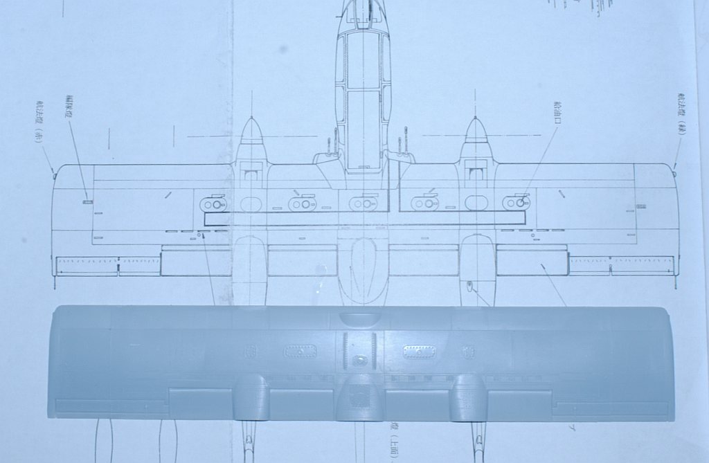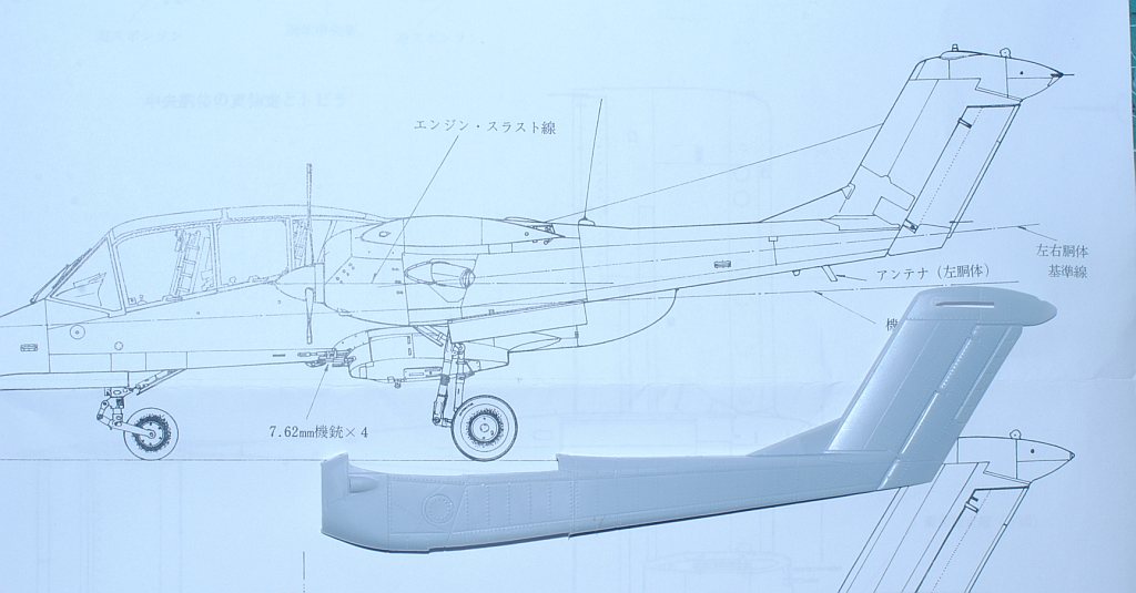 These are really invaluable resource to the current project. I pile up main parts of Testor's Bronco model to this drawing, and evaluate the error, questioning if they are within acceptable range. BTW, this category of aircraft was called COIN aircraft (counter-insurgency) in those days (Vietnum war). The main wing: Wing span 0.3 cm short, and the distance between tail beams 0.6 cm short, compared with this drawing. On the other hand, according to the reference book, the wing span of the real thing 40 feet = 12.19 meter --1/48 --> 25.4 cm. This part measures 25.4 cm sharp. It seems no problem, contrary to the propagated too-short wing span accusation of this model. I will ignore, Photo-1 in piles,