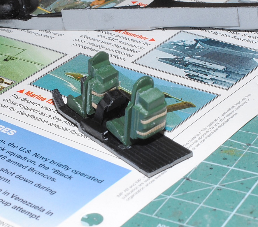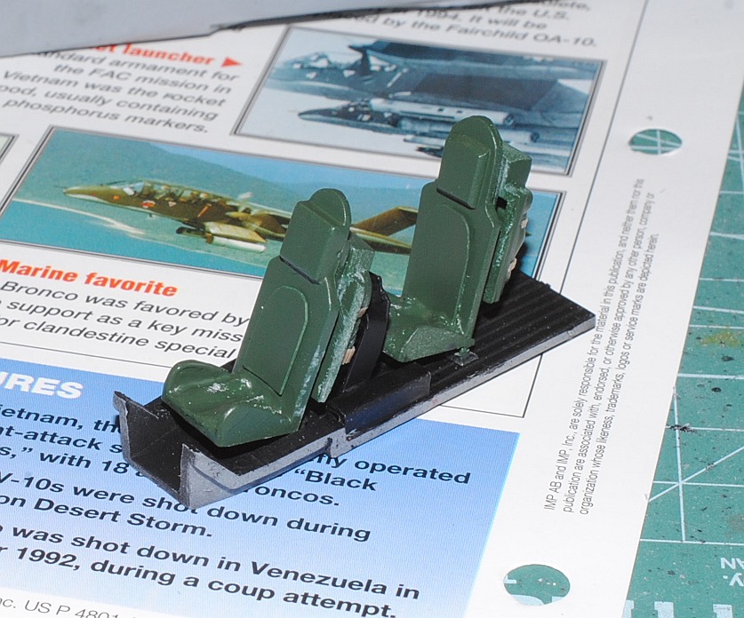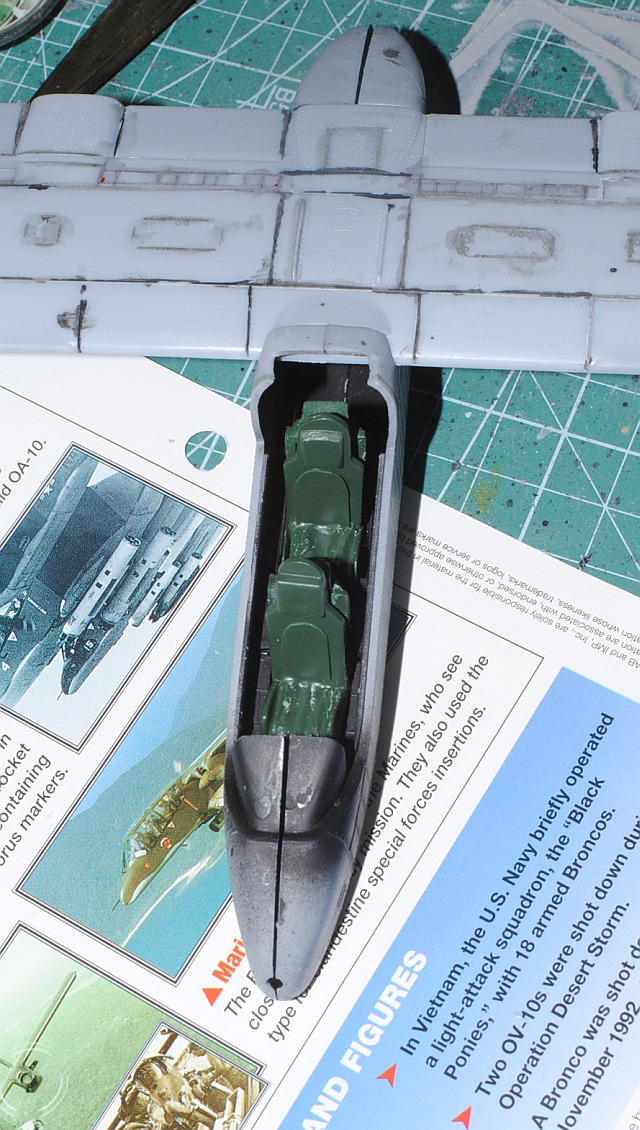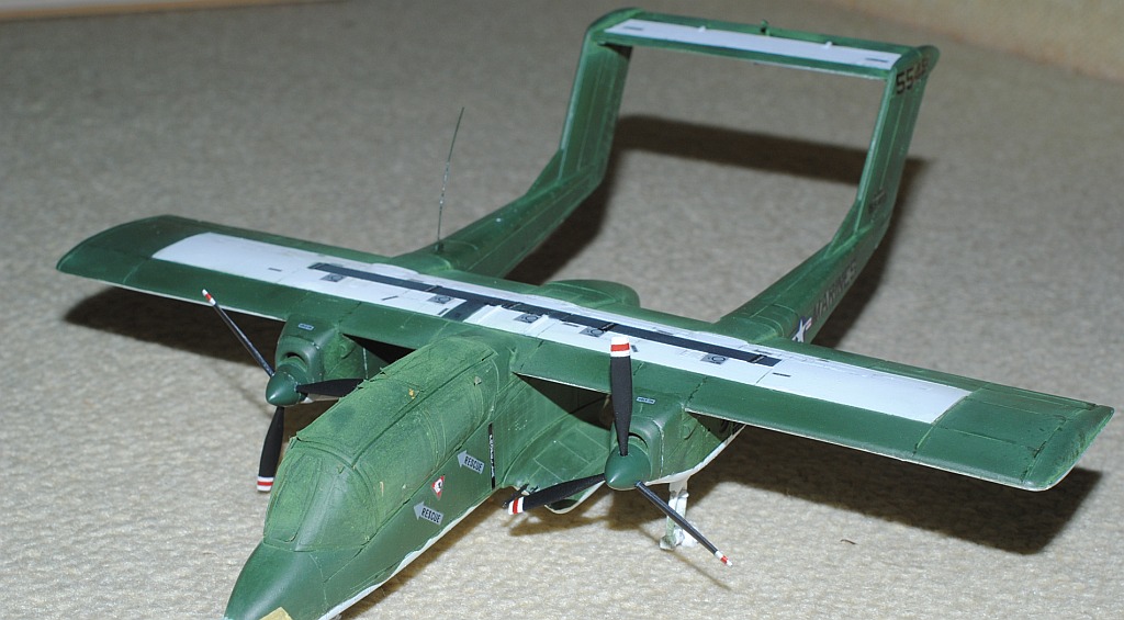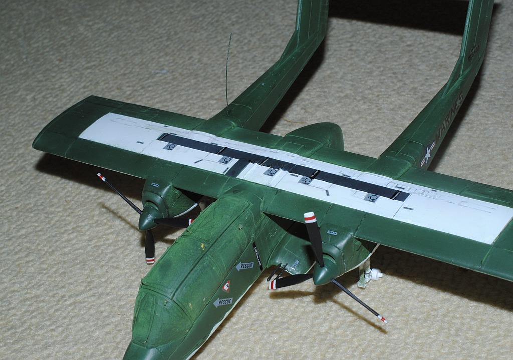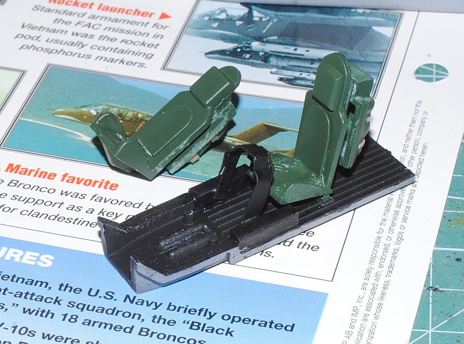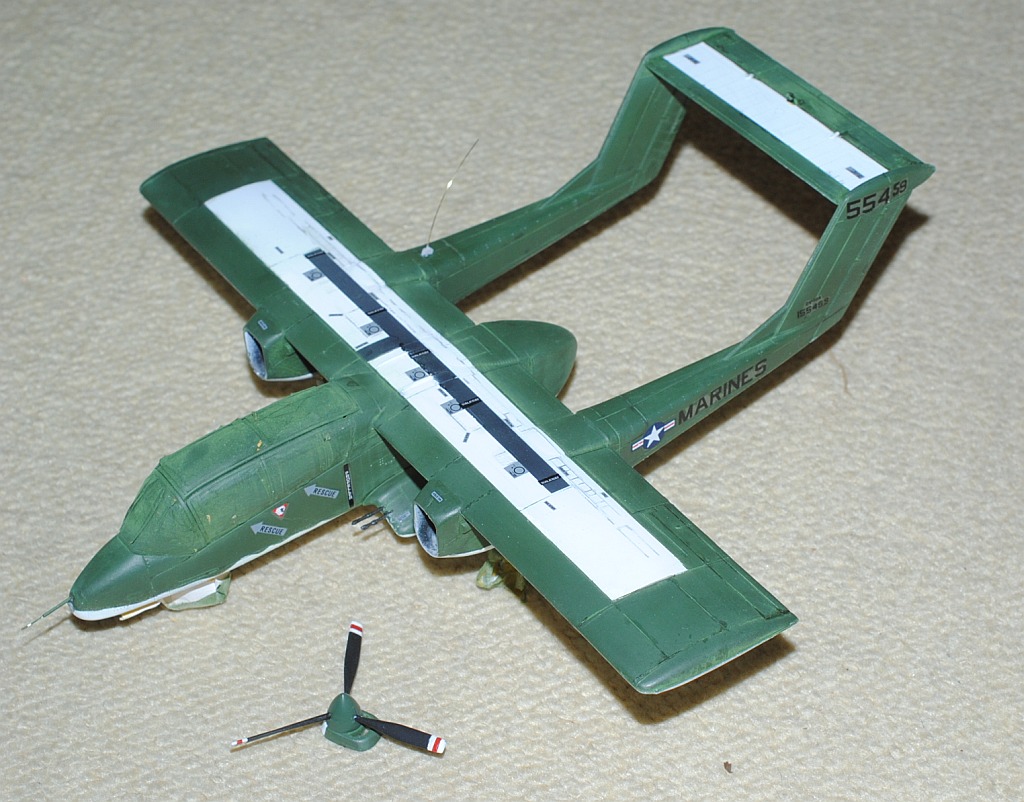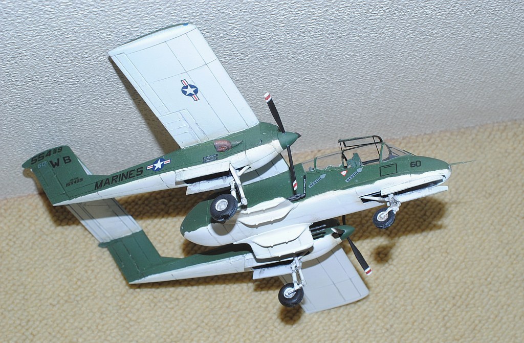 [Referenced Image] My model is from VMO-6, though, this image is very representative of their brave mission, I suppose. During Operation Talor Common in 1968, OV-10A of VMO-2 was hit and landed to An Hoa Airfield, circa 35 km southwest to Da Nang Base. The battle damage was assessed by pilot Major (or Captain) Calvin A. Lloyd (spell?) and observer Ensign Sharon C. Cartney (spell?). Under the sponson, LAU-32/A 2.75 inch rocket pods are installed. Very informative image from Famous Aircracts of the World, vol.45, OV-10 "Bronco", Kokufan, Bunrindo, Tokyo, Japan(2001/02, ISBN-13: 978-4893190420).
