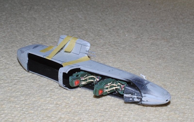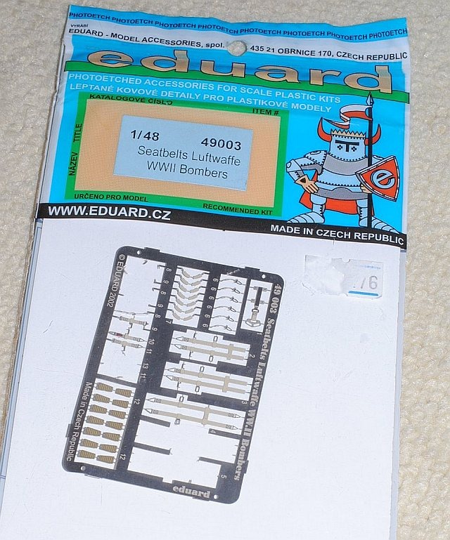 2013. 10.4-5. Cockpit interior is almost finished. Co-pilot seat is scratch built, control rod is made of soft solder wire, instrumental panel is cut and paste from several decal sheet from other kits, and seatbelts are by add-on eduard kit - Photo-1, Photo-2 Temporarilly installed to the fuselage, Photo-3 ditto, dorsal view, Photo-4 Side view, Photo-5 Seatbelts are diverted from eduard 49003 for Luftwaffe WWII bombers, Photo-6 Comparison with reference image, after fuselage glued.