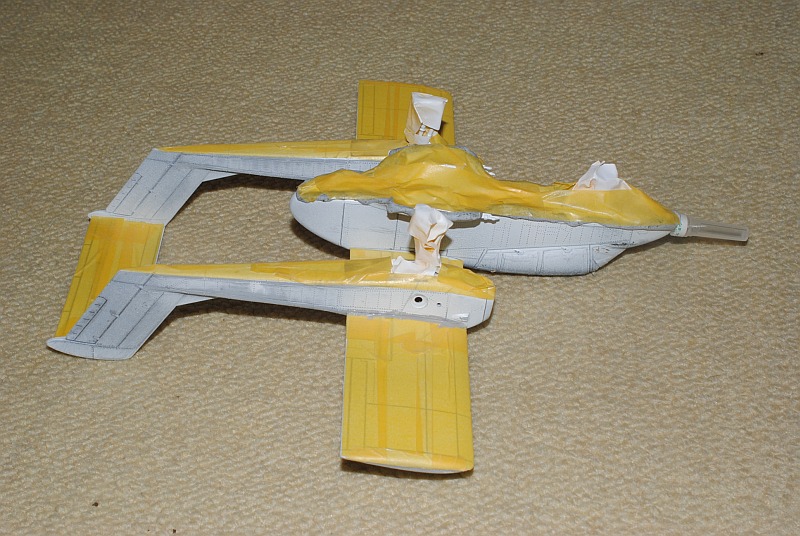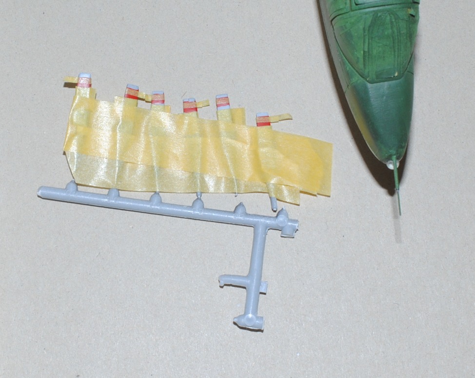 2013. 11.23. In preparation for spraying green to the upper surface, masking is preformed with tapes and Blu-Tack - Photo-1 Upper surface, Photo-2 Lower surface,