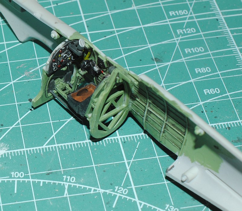 2012.12.01-02. Cockpit interior was glued and painted. I brushed with diluted Tamiya X-19 "Smoke": After assembly - 1, 2 -
