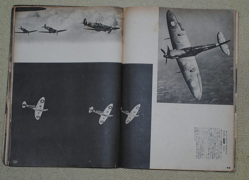 1. The Wings of The World ("E̗, Sekai No Tsubasa"), Showa 17 (1942), the Greater Eastern Asian War edition. By Asahi Newspaper. (Photo 1: Cover sheet, Photo 2: pages on Spitfire,